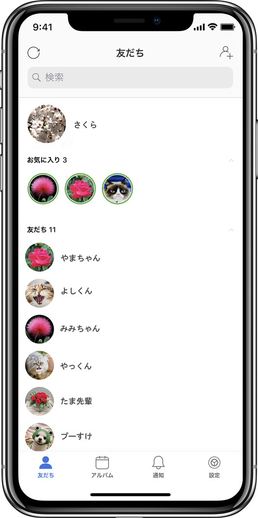思い出の写真や動画を少数多数のお友だちで共有しょう。