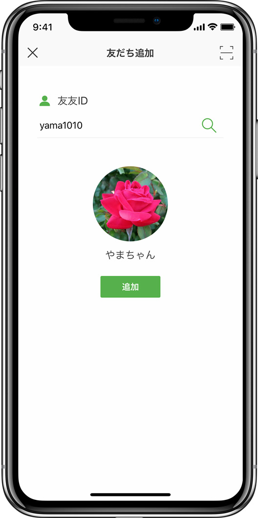 登録方法はID検索または、QRコード読み込みのカンタン操作のみ。