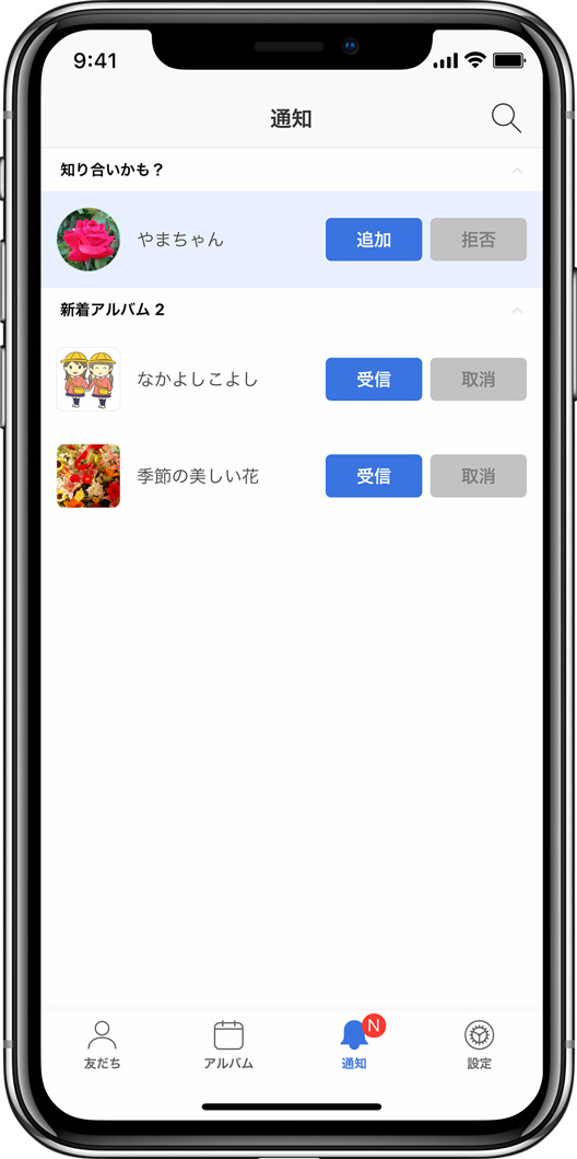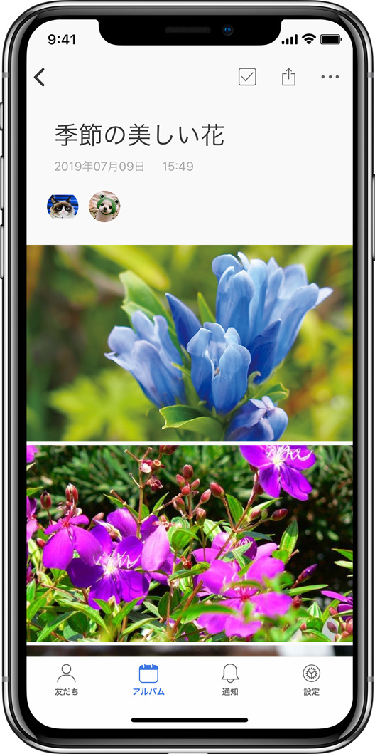 アルバム作成完了時に設定された共有したいお友だちに通知されます。